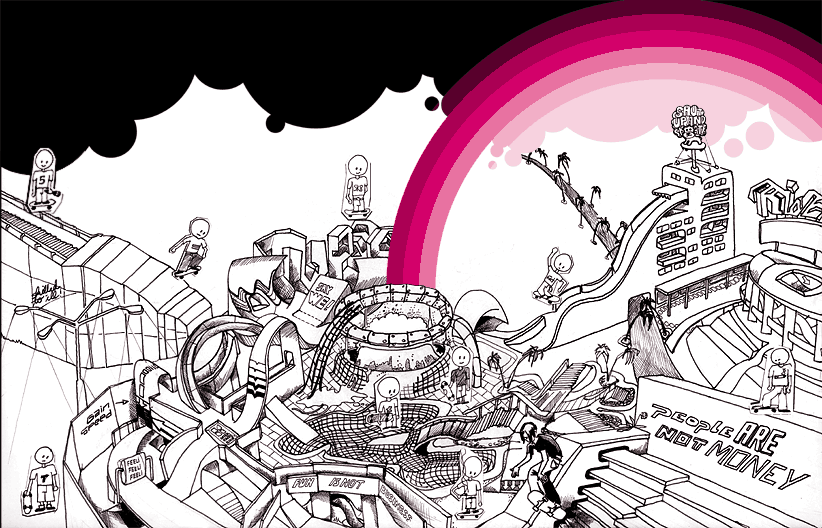 Illustration For Skateboard Magazine "Brett", Title "Asphalt Skate Park".